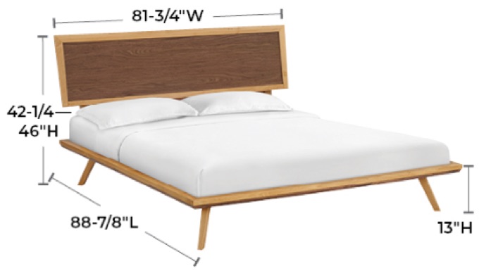 Size: 85” (length) 81 1/2” (width) 50” (height) 15” (footboard height) 9” (slat height)