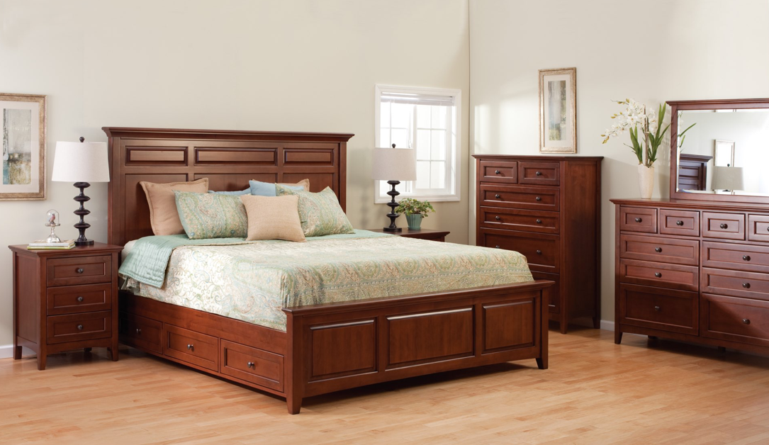 Description: 6drawer Queen Mantel McKenzie Bed Antique Glazed Cherry Finished.