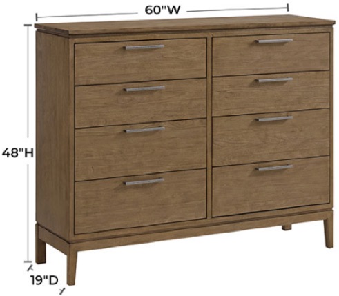 Bailey Bedroom Collection has a deliberate, minimalistic design that is both relevant and timeless. It is the essence of well-crafted, real wood furniture for today’s modern living. Two different earth-tone finish options combine with elongated drawer pulls in a graphite finish adding a touch of elegance to the design. The Nutmeg finish is reminiscent of the exotic spice, warm in tone. The Almond finish is a creamy beige, light and neutral. Created from American Alder hardwoods. English dovetail, solid wood drawer construction and full extension metal ball bearing drawer slides ensures longevity. Nightstands feature dual port USB. Two bed styles and two bed types offer different looks. One bed is solid wood with a slat detail and the other is an upholstered headboard and footboard combination. Both bed designs come in storage, rail and headboard only options. Headboard only option is compatible with most Hollywood bed frames.